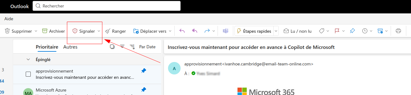 Nouvel outil : Signaler un courriel indésirable avec Outlook