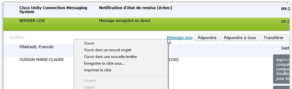 - Cliquer sur le bouton droit de la souris sur le lien message.wav;